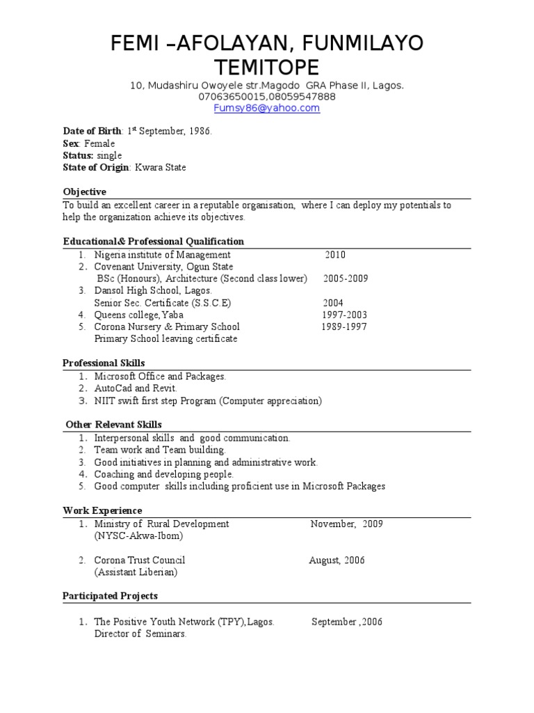 The classic cv will prove itself in technical professions and it is also a good choice for employees from the financial and insurance. He is applying for a position of a developer. Nice tips but i will appreciate samples of cover letter and cv for logistics and supply chain mgt pls send them to me. Having a well written curriculum vitae is key to applying for new job vacancies in nigeria or getting a placement in your dream workplace. Good cv sample jobs vacancies nigeria 12 nigeria cv sample pdf resume package best way to write a curriculum vitae cv in nigeria samples of cv